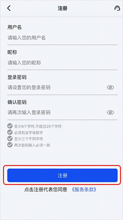 在注册介面完成系信息填写后,点击注册按钮确认信息