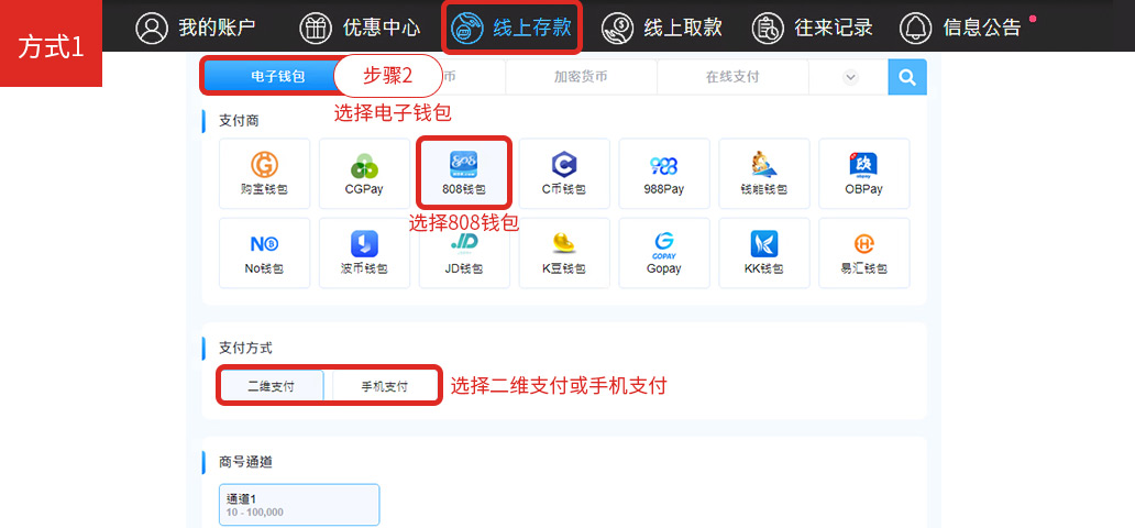 选择付款方式,根据页面显示快捷金额,或手动输入您需要的金额,选择付款方式,点击购买币