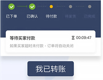 根据卖家收款信息转帐,成功后点击【我已转帐】上传转帐凭证,卖家需在规定时间发货,超出时间系统将自动提交工单