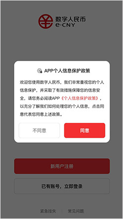 开启数字人民币APP,阅读并同意APP个人信息保护政策