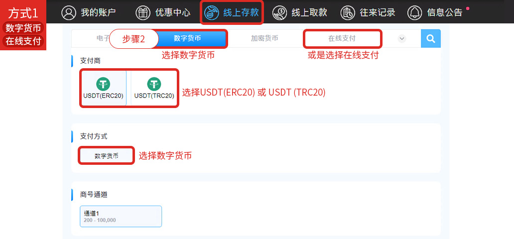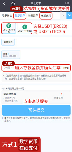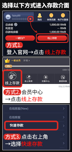 - 选择以下方式进入存款介面: