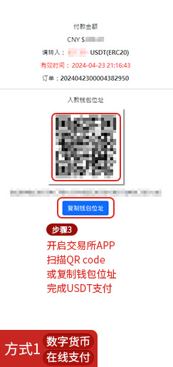 - 或复制钱包位址完成USDT支付