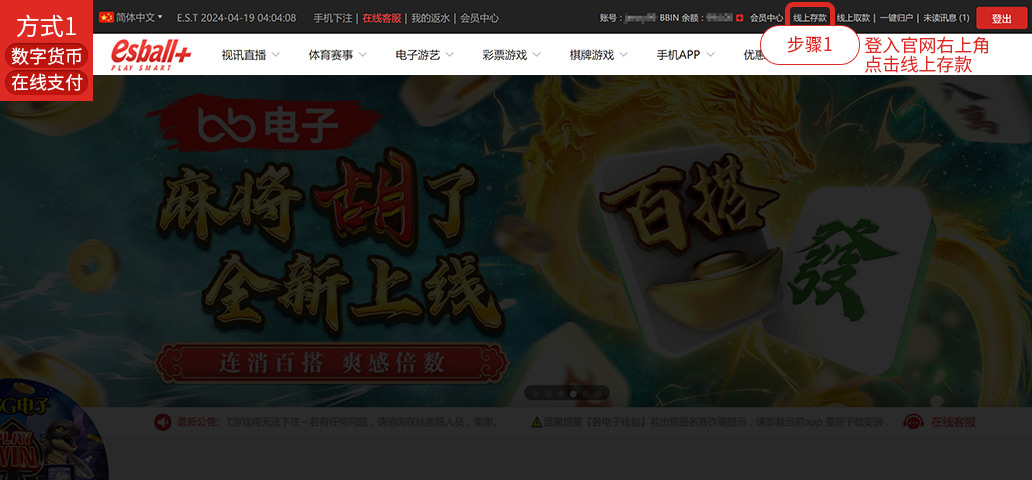 - 1. 登入官网点击线上存款